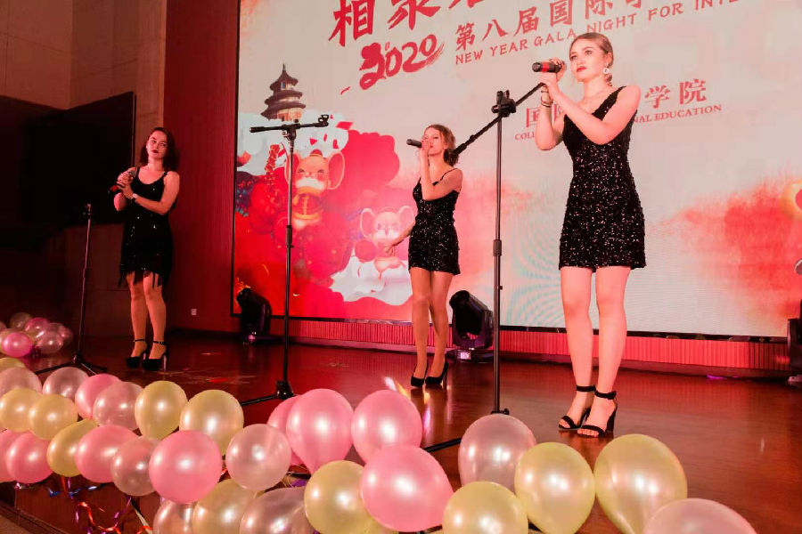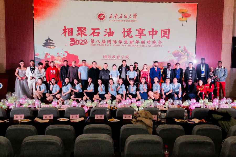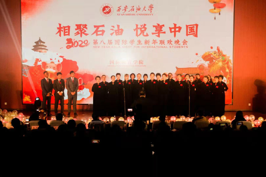 12月20日晚,“相聚石油·悦享中国”2020年留学生新年联欢晚会在鄠邑校区图书馆弘石报告厅成功举办。鄠邑校区管理办公室、学生工作处、校团委等部门负责人受邀观看晚会,国际教育学院院长董皓、副院长秦璟、颜庭星及学院全体教职工、300余名留学生参加晚会。