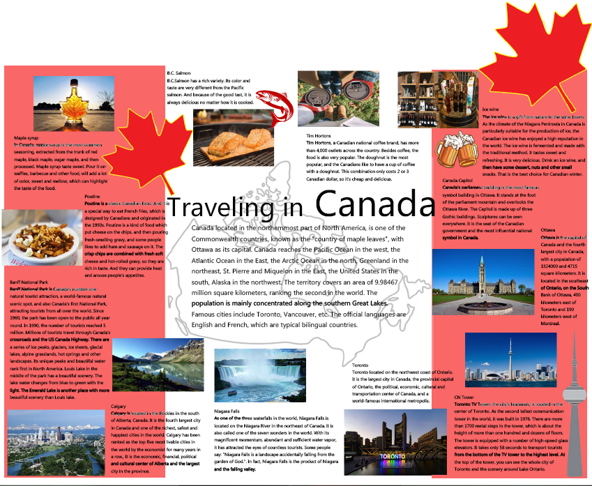 本次活动要求同学们以小组为单位,分工协作,共同制作一份关于英语国家文化的展板。活动前夕,各小组确立主题,讨论任务分工并查找相关文字和图片资料,每位成员积极投入准备工作。在有充足准备工作的前提下,各小组开始协作制作电子版和纸质版文化展板。
