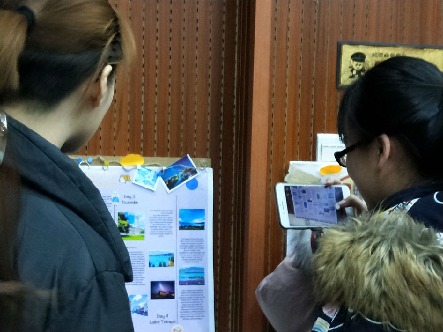 成果展示会上,各小组图文并茂的展板吸引了一大波同学前去参观。展板主题多样,包括饮食、节日、音乐、旅游等,涉及美国、英国、加拿大、新西兰等主要英语国家文化。