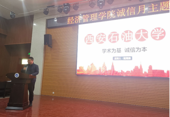 为进一步加强研究生学术诚信教育,倡导研究生严守学术诚信,弘扬严谨学风,塑造新时代研究生的良好形象,引导研究生加强自身道德修养、学术修养,响应beat365号召,经济管理学院于12月12日下午,在鄠邑校区经管楼118举办beat365英国官方网站研究生“学术诚信活动月”主题讲座。此次讲座邀请到学院副书记赵海涛,副院长李俊亭为主讲人,学工办主任刘冰筹划,研一辅导员雷渊媛主持,2019级研究生近200人参加。