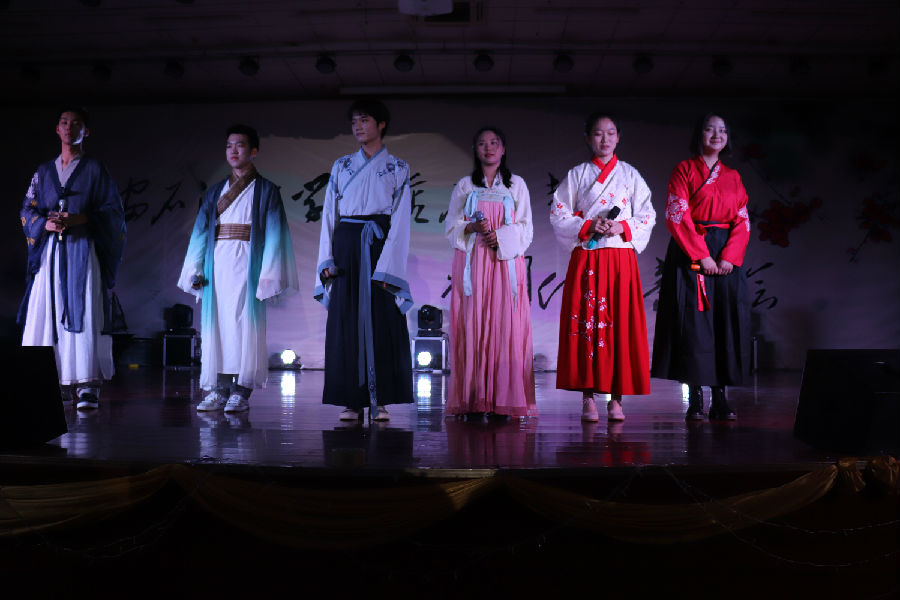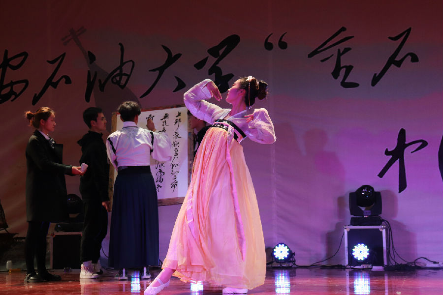 接下来音乐会正式开始。一首婉转悠扬的陕北民歌《叫一声哥哥快回来》将我们带入传统民族音乐氛围中;接着又是动态美与民族美的结合,哈萨克族的同学们献出动感十足的民族舞蹈;长笛与二胡奏出一曲“美丽的神话”;人文学院与材料学院同学合作演出京剧《春闺梦》;藏族姑娘卓尔丹舞出庄重优美的《转山》,新疆小伙弹着冬不拉唱起《明月思故乡》……最后,人文学院卢强老师带领两位学生在动听的中国古典音乐和舞蹈的背景下挥毫泼墨,献出技惊四座的书法作品。