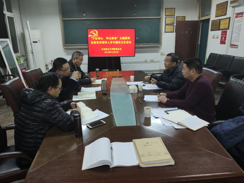按照“不忘初心、牢记使命”主题教育领导小组工作安排,12月6日下午,马克思主义学院召开处级党员领导人员专题民主生活会。马克思主义学院联系校领导校党委副书记张木,学校主题教育督导组耿岭到会指导。马克思主义学院领导班子成员参加了会议,民主生活会由院党总支书记李渊主持。