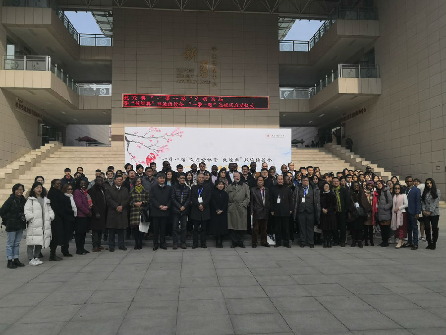 12月8日上午,中国日报·21世纪英文报、陕西师范大学联合主办的“一带一路”文明论坛暨“致经典”双语朗诵会“一带一路”选拔区启动仪式在陕西师范大学新勇活动中心顺利召开。国际教育学院颜庭星副院长带队,学生事务部辅导员潘德润、泰国学生金华、塔吉克斯坦学生俄罗参加启动仪式。