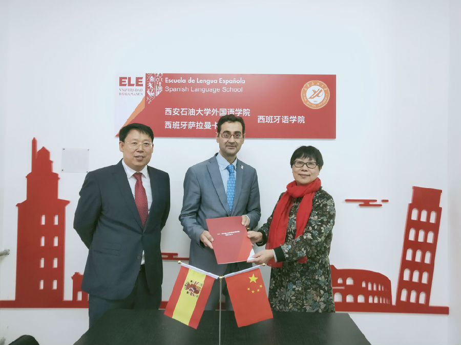 我院与萨拉曼卡大学共同建立的西班牙语中心旨在培养懂西语和西语国家社会文化的“一带一路”全方位人才。西语中心是西北首家也是目前唯一一家西班牙官方授权的三大考试网点(DELE,SIELE,esPro),按照萨拉曼卡大学设定的标准开设西班牙语培训课程、考试并颁发相应证书。学生通过B2级后,可以申请萨拉曼卡大学及西班牙其他大学的留学项目。