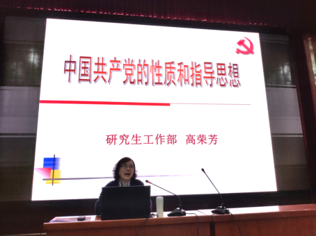 11月2日上午8点,本期入党积极分子培训班开班仪式暨第一讲正式开始。研究生工作部部长高荣芳出席了开班仪式,并对全体参训学员从培训纪律、学习态度等方面提出了要求,希望大家自觉增强组织纪律观念,严格遵守培训班相关要求,认真学习。培训班班主任强调了本次培训的考核指标和方式,并对培训课程内容、授课计划、讨论环节等进行了说明。随后高荣芳部长开启了本次培训的第一讲——中国共产党的性质和指导思想。