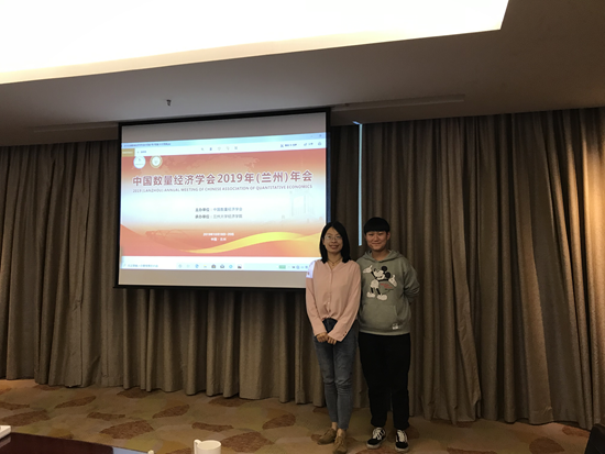 10月19日上午,由中国数量经济学会主办、兰州大学经济学院承办的中国数量经济学会2019年年会在甘肃省兰州市宁卧庄宾馆召开。beat365经济管理学院硕士研究生鲁怡娜与陈婕前往交流学习。
