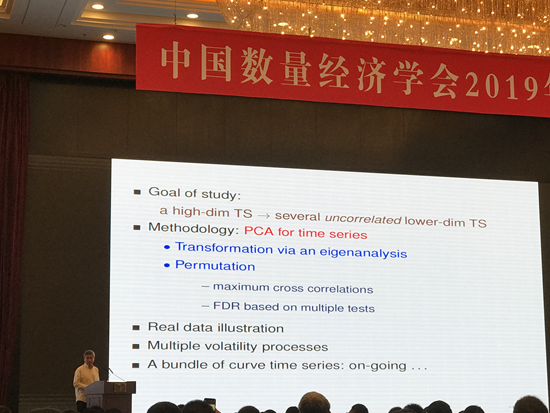 会议主旨报告先由英国伦敦经济与政治科学学院统计系姚琦伟教授进行“Multiple Forecasting based on Time Series PCA”的学术报告,接着由新加坡管理大学经济学院苏良军教授进行以“Uniform Inference in Linear Panel Data Models with Two-Dimensional Heterogeneity”为主题的报告。