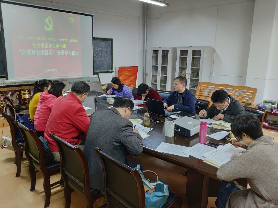 学习研讨会后,外国语学院还召开了党委会,推进基层党支部“不忘初心、牢记使命”主题教育。他首先传达了学校党委主题教育推进会议精神,还从规范支部工作手册、严格主题教育学习教育内容、抓好主题教育专题学习研讨安排、11月份党支部专题组织生活会准备、党支部书记讲党课、集中组织教师党员参观学习西迁博物馆参观学习开展主题党日活动等对学院党支部工作做了具体部署要求。会上,还专题研讨了学院意识形态和学生安全稳定工作。
