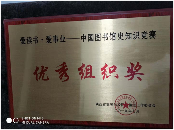 10月10日下午,由陕西省高等学校图书情报工作委员会主办,同方知网(北京)技术有限公司陕西分公司协办的“爱读书爱事业——中国图书馆史知识竞赛”圆满举办了颁奖典礼。本次活动旨在激发图书馆工作人员学习图书馆学专业知识的积极性,全面了解中国图书馆事业的发展历程,不断提升个人业务素养。比赛采用网络答题方式,共有来自全国23个省份134个单位的803人参加,共计参与答题845次。我馆领导高度重视,积极组织工作人员参与答题,最终获得优秀组织奖。
