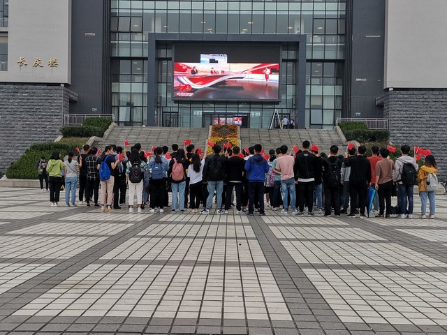 在鄠邑校区,理学院的留校学生在院党委副书记马小刚、辅导员康伟的带领下,来到学校图书馆南广场的大屏幕下,大家手持五星红旗,一起观看了整个国庆庆典。同学们纷纷表示,这次观看国庆阅兵是一次震撼心灵的过程,不仅为身为中国人而感到深深的自豪,更感到了自己身上的责任。面向新时代,我们更要时刻牢记新使命、努力学习、为国家的强大做出自己的贡献。(理学院)