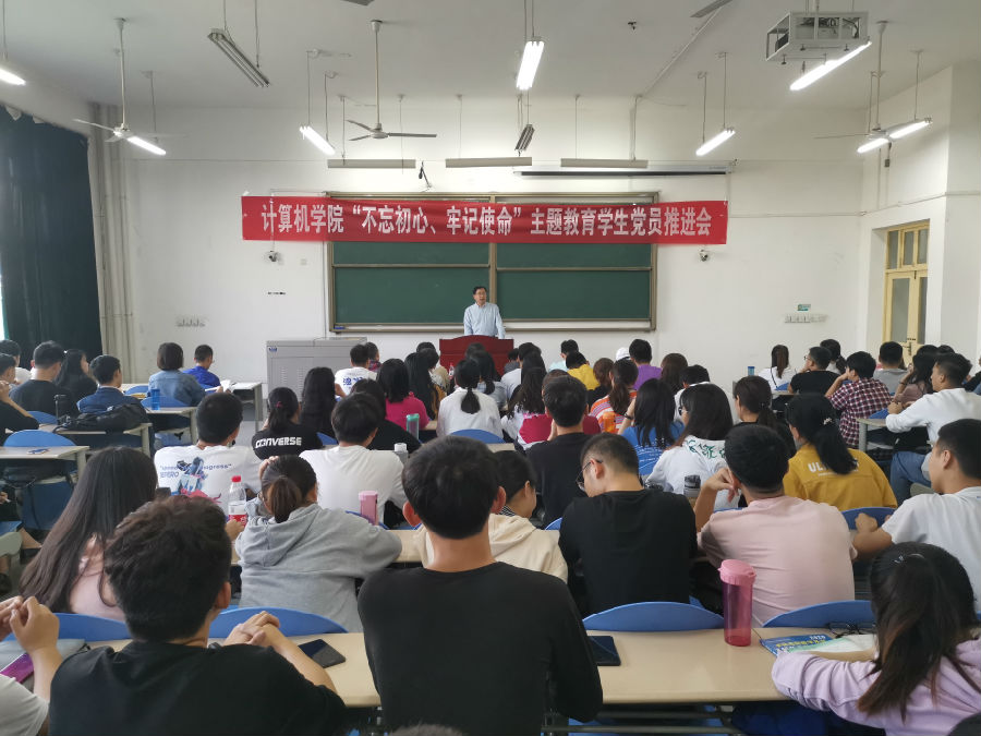 9月26日中午,计算机学院在鄠邑校区教学B区101室召开“不忘初心、牢记使命”主题教育学生党员推进会。学院专职组织员路婷主持,党委书记蔡建文、党委副书记董春诗出席,全体辅导员和学生党员一百二十余人参加。