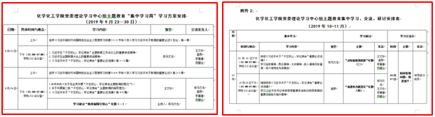 按照工作部署,学院党委结合实际,于9月16日研究制定了《化学化工学院党委理论学习中心组主题学习安排方案》,包括学院党委理论学习中心组主题教育“集中学习周”学习方案和集中学习、交流、研讨安排表,并根据主题教育学习的需要,制定了相应的具体的实践学习活动,采取形式多样灵活的学习方式,确保主题教育活动深入人心,学习过程入心、入脑,取得实效。