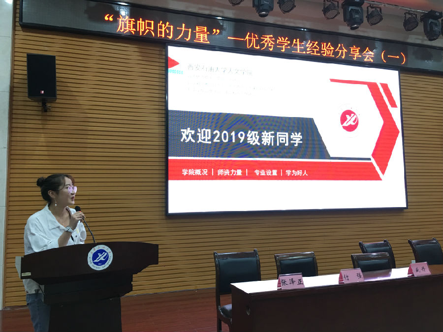 为激励2019级新生勤奋学习、努力进取、在德、智、体、美等方面全面发展,9月20日下午,人文学院2019级全体新生参加入学教育之学习经验交流会,会议在人文经管楼118室召开。本次交流会的主题是“旗帜的力量”,会议邀请了我院2017级优秀学生代表史鹿鸣同学分享个人学习经验,为新生树立学习目标。