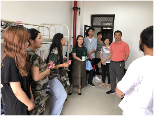 秋风送爽、丹桂飘香,一年一度的中秋佳节来临之际,9月12日上午,音乐系党总支书记孟开元、系副主任张帆、综合办公室主任王海燕、学生管理办公室主任白雨可、辅导员邓云刚走进新生宿舍慰问新生。