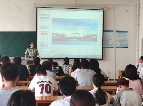 最后,毕轶慧副书记对研究生们开展了安全主题教育,强调了在校期间相关规章制度,要求2019级研究生同学牢记在校期间“三个红线”,即“绝不参与任何形式打架斗殴、绝不能违反考场纪律、绝不允许宿舍私藏或使用违禁电器”。