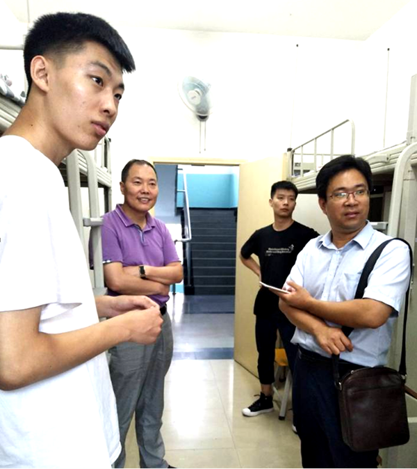 9月1日晚,学院党委书记齐仲锋、副院长宋海洋及新材料系主任肖美霞一同走访了2019级研究生新生所有宿舍,认真聆听了同学们对学校整体情况和迎新工作的感受及学习生活方面的意见建议,就大家关心的话题进行了坦诚交流。走访过程中,院领导对大家的到来表示了热烈欢迎,希望研究生在新的起点上,积极进取、勇攀高峰、全面发展。此次走访活动很好地拉近了学生与老师之间的距离,帮助新生更快更好地适应新的生活,让同学们普遍感受到了学院的温暖。