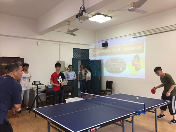 6月20日下午,我院在312室举办了2016级研究生“师生情”乒乓球联谊赛,学院党委书记齐仲锋、副书记马文庆、副院长宋海洋以及全体在校老师与2016级研究生展开激烈精彩的乒乓球比赛,现场气氛活跃、竞争激烈,欢声笑语连成一片。切磋技艺、增进情谊,师生在拼搏中享受着比赛的无穷乐趣,比赛一直持续到下午6:00,为大家带来了一场别开生面的视觉盛宴,给师生们留下了美好的回忆。本次联谊赛的举办进一步增强了毕业生的母校情和师生情。