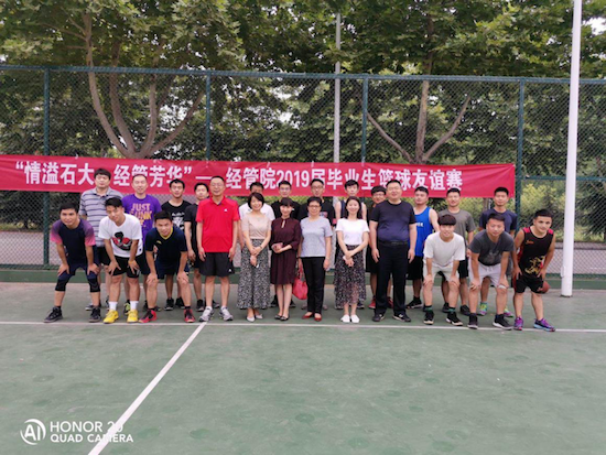 2019年6月18日、19日,经济管理学院在beat365鄠邑校区东篮球场举行以“情溢石大,经管芳华”为主题的欢送2019届毕业生师生篮球赛。经济管理学院工会主席、党委副书记赵海涛等十余名教师代表与毕业生代表参加了比赛。