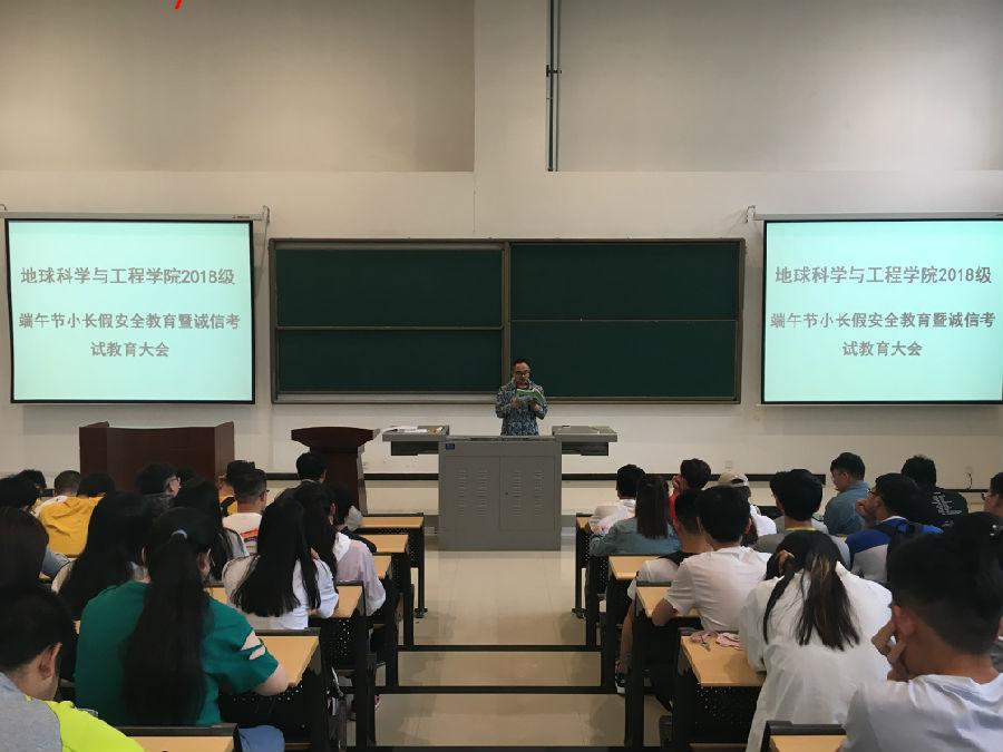 6月5日中午12:10,地球科学与工程学院在鄠邑校区石工地科楼115教室召开端午节安全教育暨诚信教育大会。辅导员李化杰老师主持会议,2018级全体同学参加本次大会。