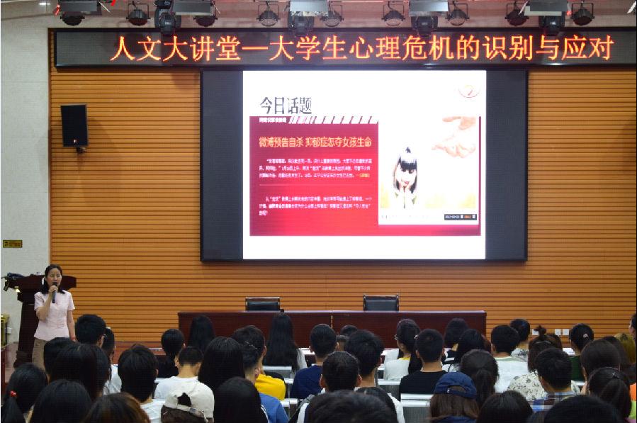 本次讲座由人文院党委副书记盛丹老师主持,相关教师以及我院中文、新闻、设计专业16级、17级、18级学生300余人听取了讲座。在讲座中,肖琼老师首先为我们解释了大学生心理危机的概念,运用专业术语详细介绍了危机分类、产生原因等,使同学们对心理危机有一个初步的了解。接着,老师对怎样识别心理危机、怎么应对心理危机这两方面进行深入讲解,讲解期间列举实例,提出多种观点。肖老师多次强调我们应关心周围同学,善于发现,从而起到预防作用。这次讲座为同学们面对心理危机提供了有效措施,使我们受益匪浅,有利于今后的学习生活。