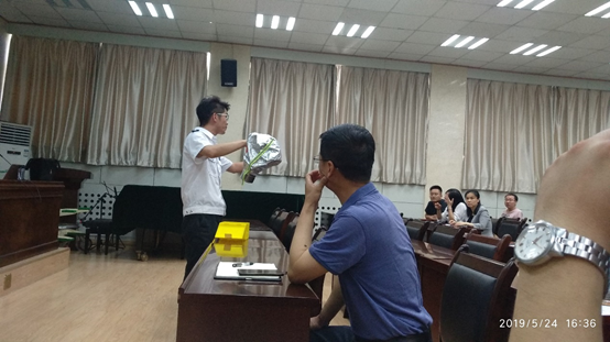 本次消防知识培训邀请了中国消防协会安全健康教育网陕西站的王增辉教官,为我院师生进行了一场别开生动的消防安全知识及消防灭火器使用技能的培训。王增辉教官借用新闻报道,通过事故分析、现场说法等方式,讲解了近年发生的多起重大火灾事故的实例,用触目惊心的画面和数字使全体参训人员深刻认识到了“隐患险于明火、防范胜于救灾”的重要性。并针对学校的消防安全实际情况,结合在工作和生活中用电、用气、用火的知识,介绍了事故发生的原由及所造成的危害情况,详细讲解了发生火灾后的自防、自救、逃生技能,按照种类、功能、用途介绍了不同的灭火器的使用方法。