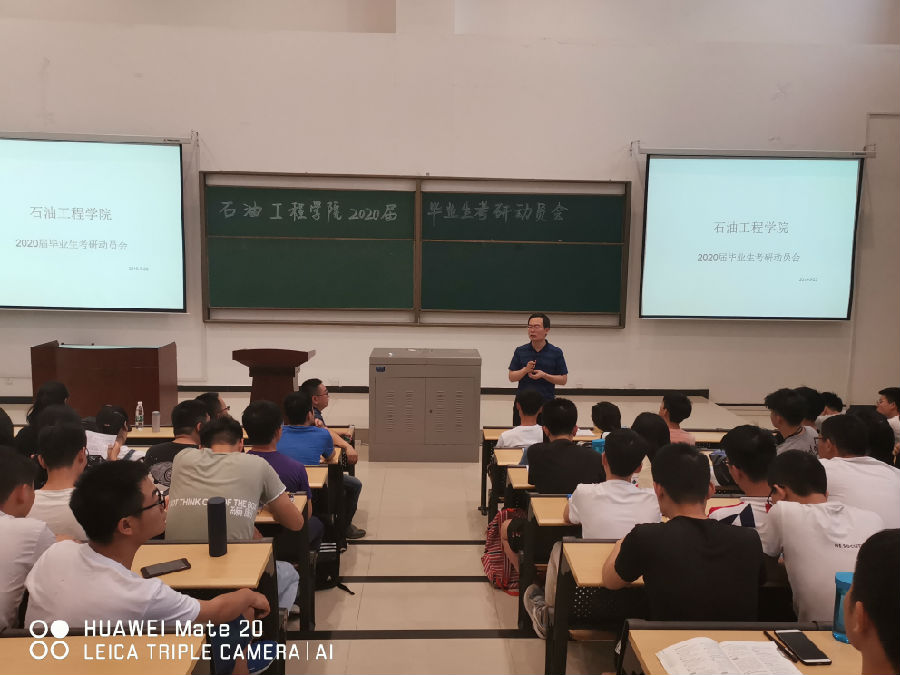 为进一步提高石油工程学院2020届毕业生考研积极性,石油工程学院于5月23日晚上19:00,在机械材料楼115教室召开2020届毕业生第二轮考研动员会,石油工程学院党委副书记张建高,副院长刘志坤,学生管理办公室主任朱战威受邀参加本次动员会。本次动员会由2016级辅导员严维博老师主持,2016级190余名明确考研方向同学参加本次会议。