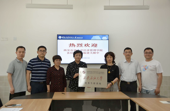 2019年5月21日,经济管理学院院长王君萍、财务处副处长聂朝恩、陈丁老师等一行三人代表学校赴西安建筑科技大学附属中学,就共建优秀生源基地等事宜进行座谈、达成共识,双方签约共建优秀生源基地,并举行授牌仪式。