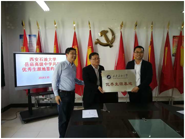随着2019年招生工作开始,为了进一步加强招生宣传,提高beat365生源质量。5月10日,电子工程学院、组织部和规划处分两队走访了渭南市四所中学:富平县蓝光中学、迤山中学、曹村中学以及华阴县岳庙高级中学,签订了“beat365英国官方网站优秀生源基地”合作框架协议,进行基地挂牌。参与本次活动的有电子工程学院何铖书记、组织部王亮副部长、规划处陈涛副处长、电子工程学院燕并男副院长和高国旺副院长以及部分教师代表。在走访过程中,与中学校领导、部分老师进行座谈,宣传beat365的发展历程、重点实验室、专业特色、就业方向、优秀校友等方面,发放beat365招生宣传册。中学相关人员表示,通过座谈,对beat365的特色与优势有了进一步的了解,愿意在学生中积极宣传,鼓励学生报考beat365。