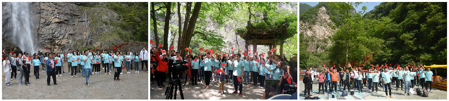崇山峻岭,飞瀑入潭,峰峦叠嶂、沟谷连绵。当天上午,人文学院部分领导、教师、学生党员和入党积极分子来到风景优美的太平国家森林公园,与景区的工作人员、游客一起,以饱满的热情投入到本次活动中。在景区内石船子、彩虹瀑布等景点,《我和我的祖国》、《歌唱祖国》两首歌曲在同学们的演绎下,嘹亮的歌声回荡在山林绿水间,激扬的旋律、铿锵的唱词吸引周围游客纷纷驻足。在现场越来越热烈的气氛中,大家情绪高涨,跟着音乐哼唱、纷纷挥舞着小红旗,五星红旗交相辉映,汇成一片红色海洋,令人激情澎湃。