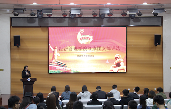 2019年4月1日中午,经济管理学院在经管人文楼118举办了经济管理学院红旗团支部评选活动。院团委书记刘冰老师、各年级辅导员和参评班级代表共100余人参加。