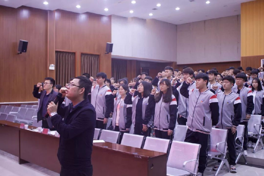典礼在慷慨激昂的团歌中拉开了帷幕,首先,由上期培优班优秀学员窦鹏洲同学、本期培优班学员代表李渲同学分别与学员们分享了自己的理想与目标,用优秀事迹、切身体会向培优班新生们传递了正能量,树立了好榜样。