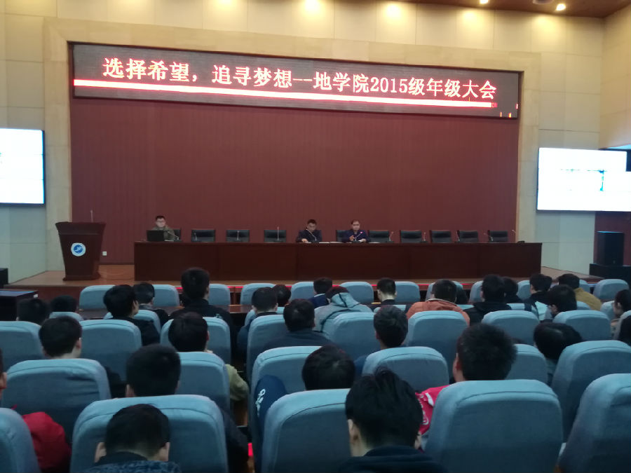2019年3月6日,地球科学与工程学院在鄠邑校区弘石报告厅召开2015级年级大会,会议由2015级学生辅导员邱岭老师主持,学院副院长宋立军教授、党委副书记孙会珠老师出席,2015级全体学生参加。