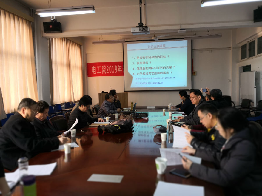 为做好第五轮学科评估工作,加快学科建设,电子工程学院于2019年1月29日上午10:00-12:20,在雁塔校区1号教学楼905,以“齐心聚能,共谋电院”为主题,举办了“学科评估教授研讨会”,学院在校13名教授与学院班子成员共17人参加。