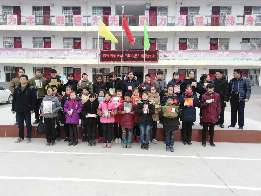 1月11日,校团委组织青年志愿者团队前往永寿县开展“万名学子扶千村”社会实践活动,为乡村中小学送去“微心愿”物品,为贫困户送温暖。