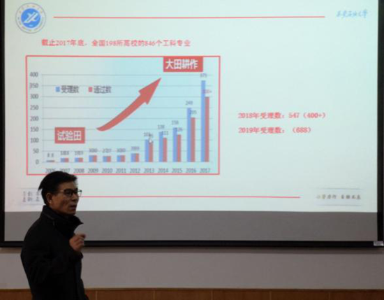 时保宏主任长期从事专业认证(评估)相关工作,经验丰富。在推进会中,时主任详细讲解了专业认证(评估)工作的国内外现状、理念、改革进程。强调以学生为中心(Students-Centered,CS)、结果/产出导向(Outcome-Based Education,OBE)、持续改进(Continuous-Quality Improvement,CQI)三大原则,强调了在专业认证(评估)理念下,发挥任课教师积极主动性的重要作用。