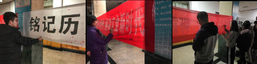 在“众指成城、勿忘国耻、指印签名”活动现场,师生们一一手染红色印泥在“铭记历史,勿忘国耻”主题墙及“弘扬爱国奋斗精神,建功立业新时代”横幅上,庄严地按下指印并签下姓名,表达中国新一代年轻人不忘国耻,奋发图强,振兴中华的决心。