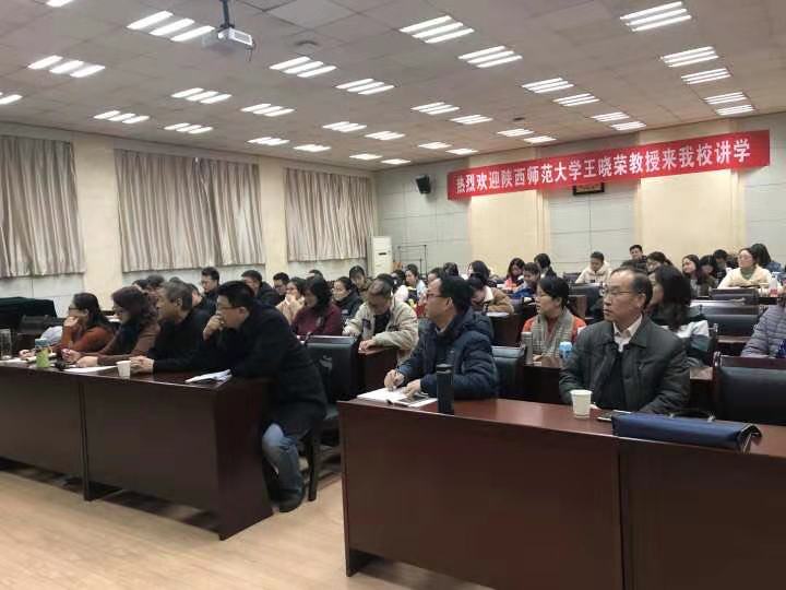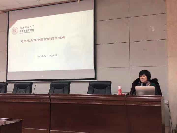 12月10日下午,由马克思主义学院举办的“思政大讲堂”系列学术报告会在雁塔校区会议中心第三会议室举行,陕西师范大学马克思主义学院王晓荣教授应邀为我院师生作了以“马克思主义中国化的历史使命”为主题的报告。报告会由我院副院长张海涛主持,我院党总支书记李渊及广大师生参加了报告会。