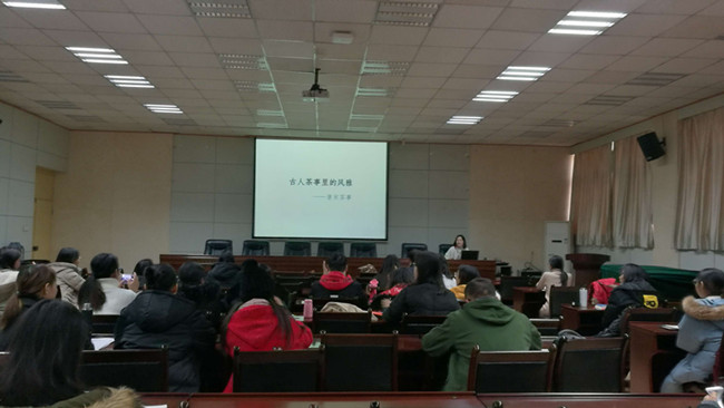 12月11日下午,人文学院在西阶第三会议室举办了以 “古人茶事里的风雅”为主题的人文学术沙龙。本次讲座由黄庆丰副院长主持,主讲人为人文学院设计系教师任轩,2018级汉语国际教育专业全体学生参加。