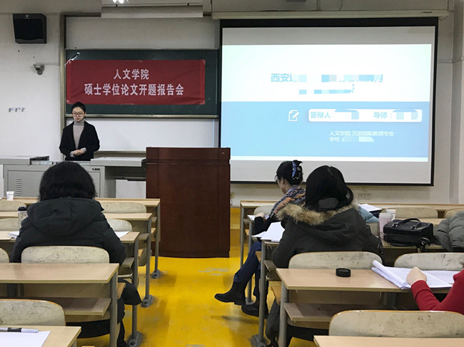 根据研究生院的工作进度安排,人文学院于12月7日开展了2017级汉语国际教育专业硕士论文开题论证答辩工作。25名2017级研究生分为两组分别在本部二号教学楼1007、1011教室进行了汇报,10名硕导及2名答辩秘书参与了答辩论证工作,2018级全体研究生旁听了本次答辩会。