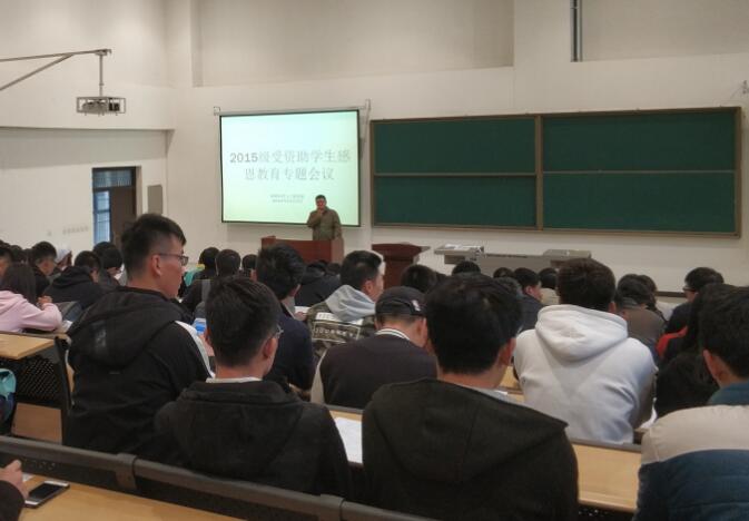 2018年11月5日下午,地球科学与工程学院召开2015级学生感恩教育主题大会。会议由辅导员邱岭老师主持,2015级全体受资助学生参加会议。
