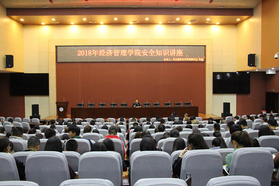 张旭所长根据大学生群体安全意识较弱,法律意识淡薄,以及经济管理学院女生人数多,自我保护能力较低的特点,通过真实的案例分析,就防盗防骗、禁毒、反恐、女大学生人身安全以及校园贷等方面展开教育。普法讲座期间,同学们与张所长进行关于校园贷、非法传销方面的交流,询问自己遇到的问题,张所长也进行了详尽的回答。
