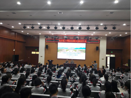 10月25日晚,化学化工学院在人文经管楼118教室举办了2018级安全教育大会暨普法宣传教育讲座。校保卫处张永华副处长主讲。学院学管办主任董丙剑主持。学院2018级辅导员李希、学院2018级全体学生参加。