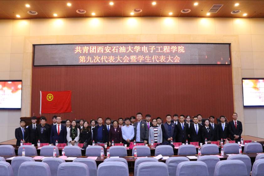 10月24日晚7点,共青团beat365英国官方网站电子工程学院第九次代表大会暨学生代表大会在鄠邑校区弘石报告厅隆重召开,院党委副书记黄建礼老师、校团委姜国平老师、院团委书记毕轶慧老师、学院各年级辅导员老师、各兄弟院系学生会代表以及本院团学代表共计300余人参加了本次大会。石油工程学院、材料科学与工程学院以及地球科学与工程学院为本次大会送来了贺信。