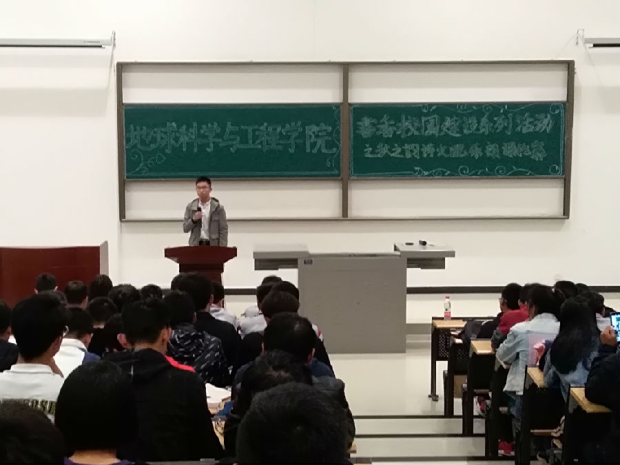 为响应学校“书香校园”建设的号召,按照校团委关于举办第十二届“秋之韵”诗文配乐朗诵比赛相关通知的精神,10月17日晚19:30,地球科学与工程学院在鄠邑校区石工地科楼115教室举办“秋之韵”诗文配乐朗诵比赛初赛。院团委学生会主要成员和第十一届“秋之韵”诗文配乐朗诵比赛获奖同学担任此次比赛评委,辅导员李化杰老师应邀出席比赛,2018级全体同学观看了比赛。