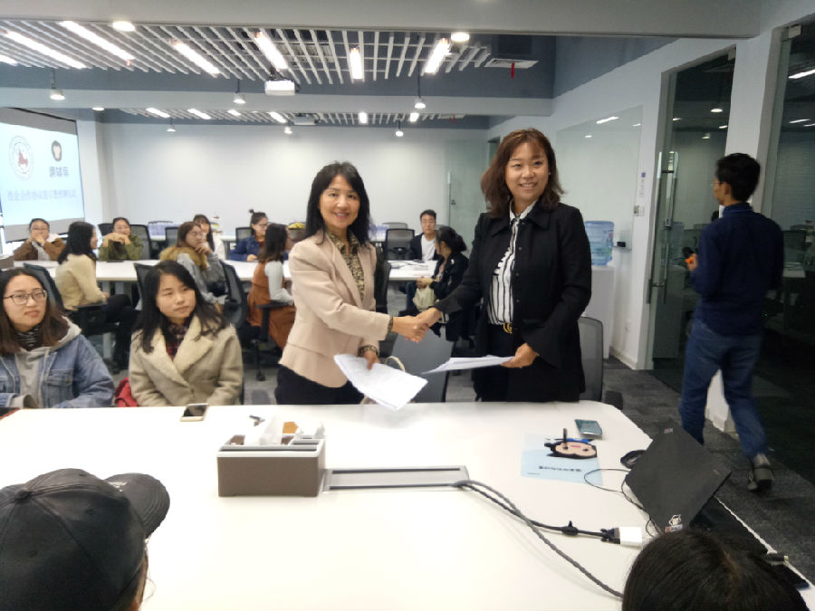 院党委书记廖敏在总结发言中说:这次签约仪式是外国语学院首次以学生为主,实施 “走出去”战略的一次有益的新尝试。只有以学生为主,让更多的学生积极主动 “走出去”,参观企业,了解企业文化与背景,才能让他们对自我的职业规划有明确的认知、对就业的概念有一个直观的了解。她代表学院感谢猿辅导(西安)为此次签字仪式做的精心安排,希望双方进一步加强合作,充分整合优势资源携手合作,助力大学生成长,实现共赢。