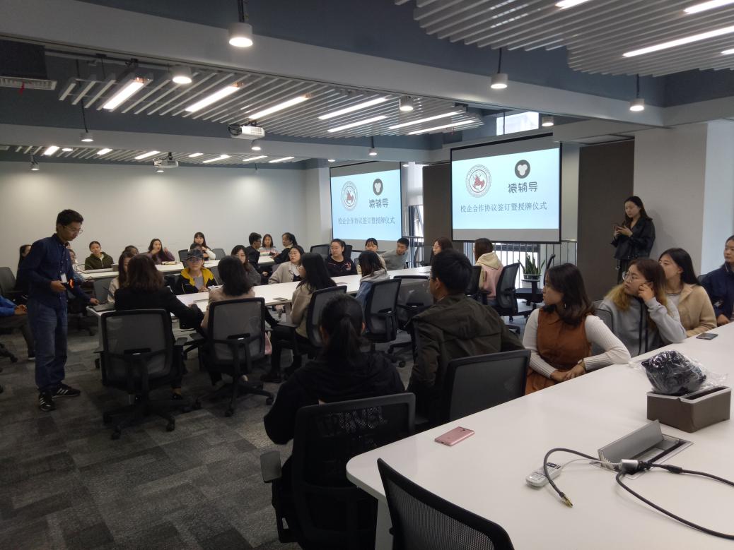签约仪式前,猿辅导相关负责人还带领外国语学院学生代表参观了猿辅导西安分公司的办公环境。