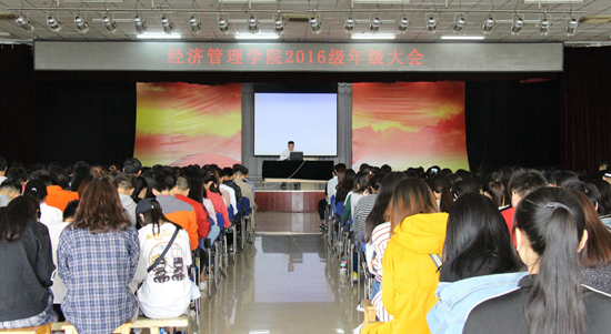 9月28日下午,经济管理学院2016级年级大会在鄠邑校区腾辉大学生活动中心召开。本次会议由辅导员武威老师主持,2015级推免生代表与2016级600余名学生参加。