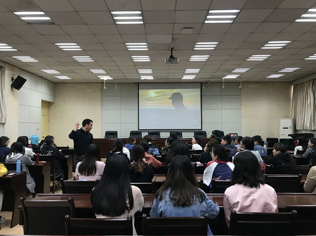 廖嘉良博士结合自身的海外学习与生活经历,通过几组寓意深刻的视频,全程使用英文向同学们生动地讲述了在跨文化交流中人们应该遵守的基本原则,以及他对梦想、激情、真理的理解。同时提出在研究生生活中学会思考的三个前提:第一,要有激情去追寻知识;第二,要拷问自己的人生到底想要什么;第三,要自己拿主意,敢于捍卫自己的观点。在最后的互动环节中,同学们热情高涨,现场掌声不断。