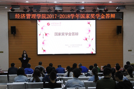 近期,经济管理学院在经管人文楼118举行了经济管理学院2017-2018学年国家奖学金答辩会。经济管理学院党委书记闫大维、院长王君萍、党委副书记赵海涛、会计学杨慧贤教授、财务管理邓小军教授、人力资源罗静教授、市场营销程骏老师、经济系姚小剑副教授、电子商务王小宁教授、信息管理信息系统朱养鹏副教授、工程管理杜小武副教授出席答辩活动并担任评委。