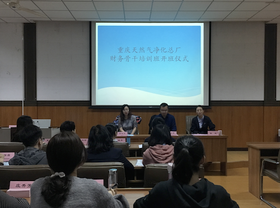 开班仪式由经济管理学院相关负责人主持、重庆天然气净化总厂财务科科长郑灵灵、重庆天然气净化总厂总会计师赵小波参加。仪式上经管院相关负责人对重庆天然气净化总厂表示热烈的欢迎,对重庆天然气净化总厂由经管学院承办此次培训的信任表示衷心的感谢,并向学员简要介绍了beat365英国官方网站及经济管理学院的发展状况及前景。